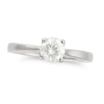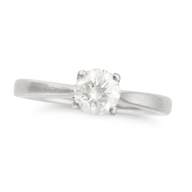 NO RESERVE - A SOLITAIRE DIAMOND RING in platinum, set with a round brilliant cut diamond of approximately 0.80 carats, partial British hallmarks, size N1/2 / 7, 4.9g. Accompanied by a gemmological report stating the diamond is F colour and has been clarity enhanced.