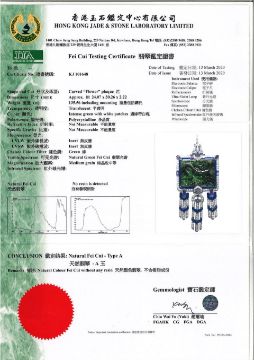 A Jadeite, Gem-Set and Diamond Pendant Necklace, by Claudia Ma Of geometrical design, the translucent carved jadeite plaque of intense green colour, embellished by brilliant-cut diamonds, calibré-cut amethysts and lapis lazuli detail, completed by a trace-link chain set with seed pearls, onyx beads and similarly cut diamonds, diamonds approximately 3.15 carats total, jadeite 24.0 x 30.2 x 2.2mm, signed, lengths: pendant 8.0cm, necklace 111.4cm Footnotes: Accompanied by a Hong Kong Jade & Stone Laboratory report stating that the natural colour fei cui (jadeite jade) has no resin detected. 天然翡翠配紫水晶及青金石配鑽石項鍊,Claudia Ma 鑽石共重約3.15克拉,翡翠約24.0 x 30.2 x 2.2毫米,項鍊長度約111.4厘米,附香港玉石鑑定中心證書,鑑定為天然硬玉質翡翠-A玉 For further information on this lot please visit Bonhams.com For further information about this lot please visit the lot listing