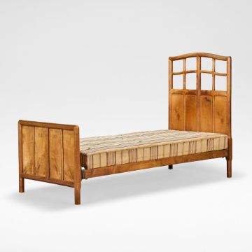 Gordon Russell Pair of single beds, circa 1929 Walnut, the latticed headboards with arched cornices, the head and footboards both panelled with cedar and boxwood strung surround. Each: 131 cm high, 91 cm wide, 206 cm deep Lot to be sold without reserve. This lot is subject to the following lot symbols: W For further information on this lot please visit Bonhams.com For further information about this lot please visit the lot listing